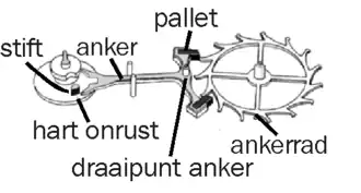 Het tikken van een klok of horloge met een onrust wordt veroorzaakt door het slaan van de tanden van het ankerrad tegen het anker en van de stift van de onrust tegen de vork van het anker.