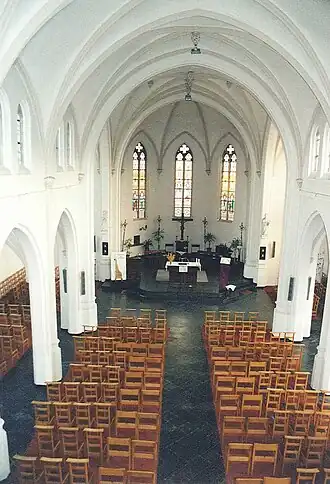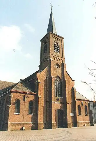 Het betreft een bakstenen georiƫnteerde neogotische kruisbasiliek met ingebouwde westtoren. Deze toren heeft vier geledingen en een ingesnoerde naaldspits. Het koor is driezijdig afgesloten.