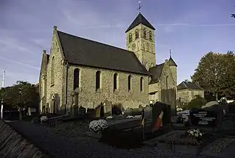 Het betreft een tweebeukige kruiskerk met vieringtoren, grotendeels uitgevoerd in Doornikse steen. De noordbeuk en het koor werden in baksteen uitgevoerd. Mogelijk werd puin van Romeinse bouwwerken gebruikt bij het optrekken van de laatromaanse kerk. De laatromaanse vieringtoren heeft een vierkante plattegrond en wordt gedekt door een tentdak.