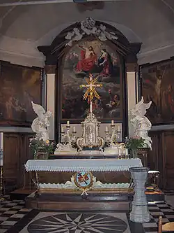 Het classicistisch hoofdaltaar dateert uit 1771-1772 en heeft de vorm van een graftombe. Het grote schilderij boven het altaar komt vermoedelijk uit de Antwerpse School, mogelijk van de hand van Gaspar de Crayer (1584-1669), hofschilder van de aartshertog. Het is het pronkstuk van de kerk, gemaakt met een meesterlijk talent en heeft een grote waarde. Het is een tafereel met schipbreukelingen omgeven door Spaanse schepen. Boven de wolken kijkt een fulminerende Christus in rode mantel verbolgen toe, terwijl een smekende O. L. Vrouw wijst naar het drama van drie schepen en acht drenkelingen in de ontketende zee. Dit schilderij werd in 1958-1959 gerestaureerd door de Oostendenaar Pierre Beniest (1902-1978). De vloer met windroos, in wit en zwart marmer, uit 1769 voor het altaar staat op de plaats waar vroeger het hoofdaltaar stond.