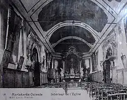 Tijdens de Tweede Wereldoorlog werd het dak beschadigd bij de luchtaanval van april 1941. Het hersteld plafond werd in 1955 wit overschilderd. Hierbij gingen de bestaande plafondfresco's volledig verloren. De huidige plafondschilderijen zijn van de hand van de Oostendenaar Gerard Desseyn in 1984, geschilderd op doek en gelijmd aan het plafond. Zij beelden de vijf glorierijke mysteries van de rozenkrans uit.