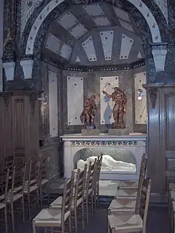 Onder het altaar bevindt er zich een graf van een onbekende adellijke geestelijke, gestorven op 12 januari 1095. Dit roept vragen op over het ontstaan van dit kerkje. Stond de oorspronkelijke kapel reeds op deze plaats of werd dit graf later naar hier overgebracht ?