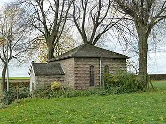 De in gelijkmatige blokken natuursteen gebouwde kapel is opgetrokken op een vierkant plattegrond en wordt gedekt door een tentdak. Aan de voorzijde van de kapel is een voorhal onder een zadeldak gebouwd dat wordt afgesloten met een smeedijzeren hek en heeft geen vensters. De zijgevels hebben elk twee rondboogvensters met glas-in-lood. De toegang tot het vierkante deel van de kapel wordt afgesloten door een houten deur. Boven die ingang is op de muur een tekst aangebracht:[1]