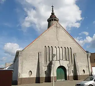 In 1924-1925 kwam aan Merksemsteenweg 36, onder leiding van parochiestichter priester Jozef Loos (Minderhout, 1890 - Emblem, 1955), een kerk gereed in art-decostijl, naar ontwerp van Jef Huygh. Het was een zaalkerk met recht afgesloten koor, gedekt door een zadeldak en voorzien van een dakruiter. Het kerkje had een monumentale ingangspartij, bekleed met natuursteen. Toen de naastliggende nieuwe kerk in 1968 gereed kwam zou de oude kerk aanvankelijk gesloopt worden, maar ze bleef behouden en werd omgebouwd tot sportzaal voor de naastliggende school.