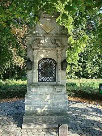 De kapel ligt vlak bij het kasteel Hof ter Brugge. Het betreft een pijlerkapel, in 1655 opgetrokken in zandsteen. De kapel is uitgevoerd met fraaie barokornamenten. Ook het wapenschild van de familie de Plaines, de kasteelheren, is afgebeeld.
