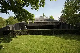 De kapel is opgetrokken in ruw beton onder een schuin dak waarbij de architectuur radicaal tot de essentie teruggebracht is. Dit schuine dak vormt als het ware een helling die de heuvel verlengt. Oorspronkelijk waren de kerkbanken ook in beton opgetrokken.