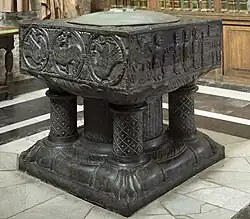 - De kerk heeft een gebeeldhouwde romaanse doopvont uit de 12e eeuw, die afkomstig is uit Doornik. Dit is waarschijnlijk het enige overblijfsel van de oorspronkelijke romaanse kerk.