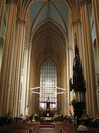 Het kerkgebouw bestaat van zuid naar noord uit een neogotische portaal met daarboven drie kerktorens, een schip, een transept, een koor en een uitbouw met kegelvormige koepel. Onder deze koepel bevindt zich de Koninklijke Crypte. De middelste van de drie zuidelijke kerktorens is hoger dan de andere twee en heeft een hoogte van 99 meter.