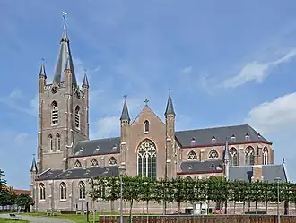 Toen vanaf 1864 de Leffingenaar Johan Joseph Faict bisschop van Brugge werd, oordeelde hij dat Leffinge, als geboorteplaats van een bisschop, een aanzienlijke kerk mocht krijgen. Hij bracht de nodige fondsen bijeen en de plannen werden omgewerkt om een omvangrijke kerk tot stand te brengen. Het werd een driebeukige neogotische bakstenen basilicale kruiskerk met driezijdige koorafsluiting, voorgebouwde westtoren met steunberen en vier hoektorens op de trans. De werken namen hierdoor heel wat tijd in beslag en pas in 1879 kon Faict de parochiekerk van zijn geboortedorp plechtig inwijden. Vanwege haar omvang werd de kerk vaak de kathedraal van het Noorden genoemd.