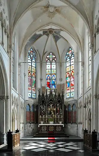 De altaren zijn neogotisch. Zeven panelen voorstellende de Zeven werken van barmhartigheid zijn 17e-eeuws. Een schilderij die de Tenhemelopneming van Maria voorstelt, is 18e-eeuws. Er zijn houten beelden uit de 16e en 17e eeuw. De preekstoel is van 1773 en werd vervaardigd door Louis De Lessue. Twee biechtstoelen zijn van 1770. De glas-in-loodramen zijn eind-19e-eeuws.