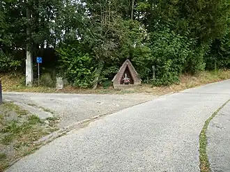 De mantelkapel, een driehoekige kapel waarvan het dak tot de grond reikt, is opgetrokken in sierbakstenen waarvan het opgaand metselwerk een halfsteensverband heeft. De kapel is afgedekt met blauwe cementen pannen en op de nok prijkt een Latijns koperen kruis. In de punt zit een witte gevelsteen verwerkt in de vorm van een omgekeerde trapezium waarop het jaartal ‘1969’ staat. De nis is opgetrokken in de vorm van een ongelijkzijdige driehoek en afgeboord door halve bakstenen. In de nis is een rots van witte zandsteen aanwezig waarop oorspronkelijk een Mariabeeld met kind stond. Vandaag prijkt er een beeld van de Onze-Lieve-Vrouw van Banneux. Voor de rots staan bloempotten. De kapel is verhoogd met een trede. Voor de trede ligt een blauwe steen waarop vroeger bloemen werden geplaatst. Rond de kapel staan enkele cipressen en struiken.