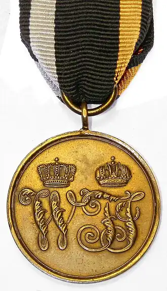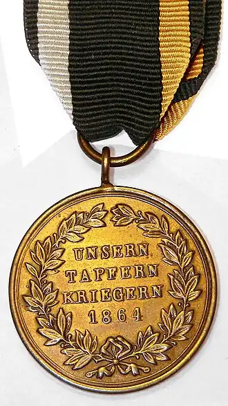In Pruisen werd dezelfde medaille in zwartgemaakt ijzer aan non-combatanten toegekend. Deze medaille voor artsen, beambten, veldgeestelijken en verplegers draagt op de keerzijde alleen het jaartal 1864 in een krans van eikenbladeren. Uiteraard ontbrak de vermelding van het veroverde geschut bij de ijzeren munten.