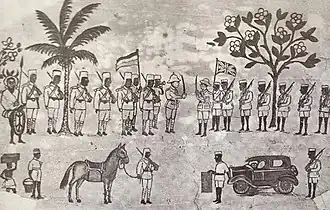 Een Askari-compagnie gereed voor vertrek in Duits-Oost-Afrika (Deutsch-Ostafrika)