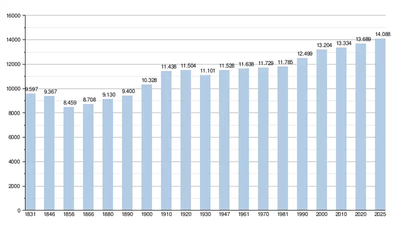 Alle historische gegevens hebben betrekking op de huidige gemeente, inclusief deelgemeenten, zoals ontstaan na de fusie van 1 januari 1977.