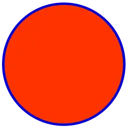 Men kan dit illustreren aan de hand van het plaatje hiernaast. Intuïtief is het rode gebied zonder rand een open verzameling: rond elk punt kan men een omgeving (gebiedje), construeren dat helemaal om heen ligt, maar toch in zijn geheel ook deel uitmaakt van . Een verzameling, waarvan het complement open is, heet gesloten. In ons voorbeeld is de blauwe cirkel een gesloten verzameling.