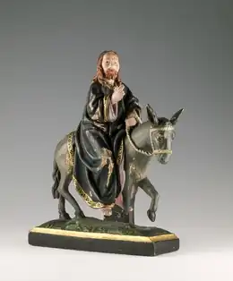 Toen de grote schare die naar het Pesachfeest was gekomen de volgende dag hoorde dat Jezus naar Jeruzalem kwam, namen zij palmtakken en gingen hem tegemoet. Ze riepen: “Hosanna! Gezegend is hij die komt de naam van de Heer, de koning van Israël!” Jezus vond een jonge ezel, ging erop zitten en reed Jeruzalem binnen (Johannes 12:12-14). Vervolgens ging hij de tempel binnen en keerde de tafels van de geldwisselaars en de banken van de duivenverkopers om - de tempelreiniging (Matteüs 21:12-13).