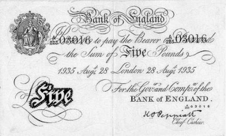 Toen de Tweede Wereldoorlog aan de gang was, wilde nazi-Duitsland de Britse economie ontwrichten, waardoor Groot-Brittannië zijn troepen minder weerstand en wapens zou kunnen bieden en een overwinning voor de hand zou liggen. Later bleek dat toch niet zo gemakkelijk te zijn. Engelse ponden waren met meer dan 150 echtheidskenmerken[1] uitgerust, waaronder het Britannia-medaillon en het speciale linnenpapier.