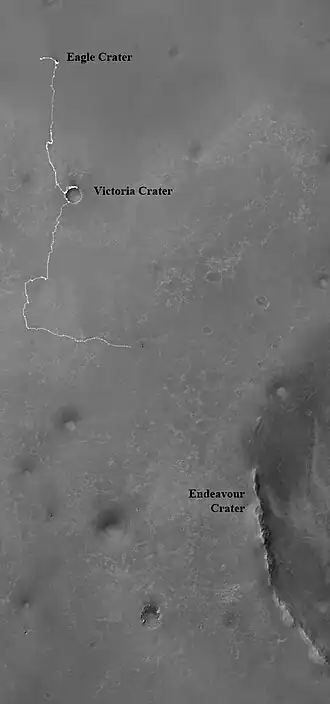 Eind september 2006 bereikte het wagentje de Victoriakrater, een grote inslagkrater op ongeveer 7 kilometer van de landingsplaats. Hij ondernam een verkenningstocht langs de rand. In juni 2007 voltooide Opportunity zijn rondgang rond de kraterrand en kwam hij weer op zijn beginpunt uit.