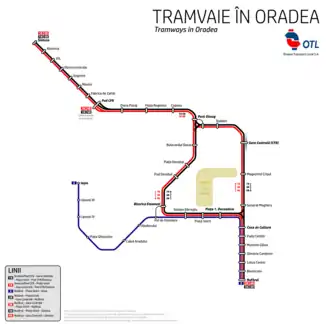 Binnen de stad wordt het openbaar vervoer verzorgd door Oradea Transport Local. De stad kent een bescheiden tramnetwerk van 3 lijnen en een systeem van stadsbussen.