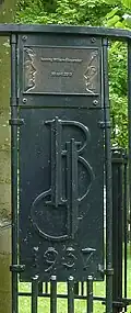 Rond hek, strak van vorm, in de kleur groen, opgebouwd uit pijlers in een formatie van drie, met aan twee zijden een rechthoekige cartouche, waarop in elkaar gevlochten de letters J (Juliana) en B (Bernhard) en het jaartal 1927. Boven een van de cartouches, is een bronzen plaquette geplaatst met de profielen van Beatrix en Willem-Alexander en de tekst Willem-Alexander, 30 april 2013. Een enkele kring van klinkers voltooid het herdenkingshek.