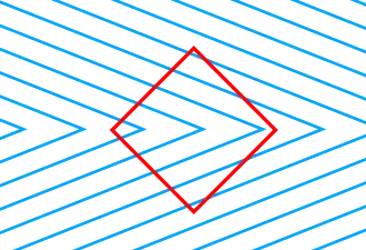 Met een patroon van gehoekte lijnen als achtergrond lijkt het rode vierkant niet langer op een vierkant, maar het heeft eerder iets weg van een ruit.