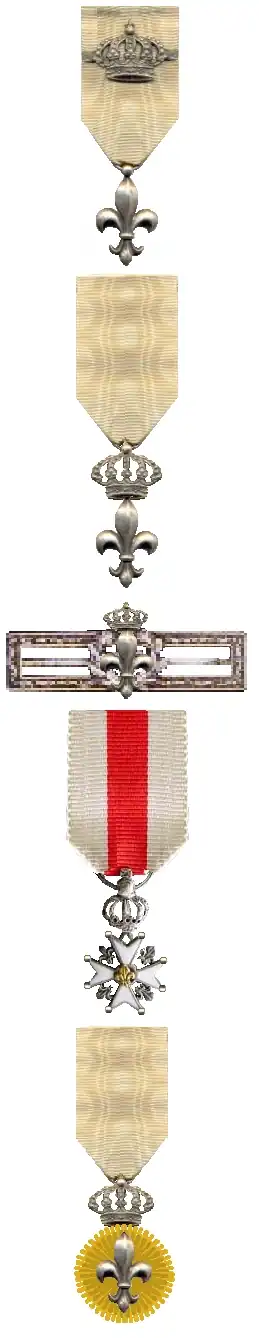Men droeg de decoratie aan een wit lint, de kleur van de Bourbons die overal het rood-wit-blauw van de Franse Revolutie verving, op de linkerborst. De Garde van Parijs droeg eerst een wit lint, later een lint met een smalle blauwe bies. Na 1815 werd het wapen van Parijs op het lint geborduurd.