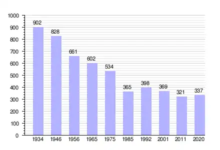 | Bevolkingsontwikkeling tussen 1934 en 2020 |