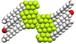 - ↑ C.E. Smith, P.S. Smith, R.Ll. Thomas, E.G. Robins, J.C. Collings, Chaoyang Dai, A.J. Scott, S. Borwick, A.S. Batsanov, S.W. Watt, S.J. Clark, C. Viney, J.A.K. Howard, W. Clegg, T.B. Marder (2004). Arene-perfluoroarene interactions in crystal engineering: structural preferences in polyfluorinated tolans. J. Mater. Chem. 14: 413. DOI: 10.1039/b314094f. CSD entry ASIJIV.