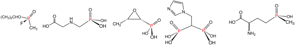 In fosfon- en fosfine-esters treedt een zeer inerte binding op tussen koolstof en fosfor. De hydrolyse van de verbindingen geeft fosfon- en fosfinezuren en geen fosfaten.
