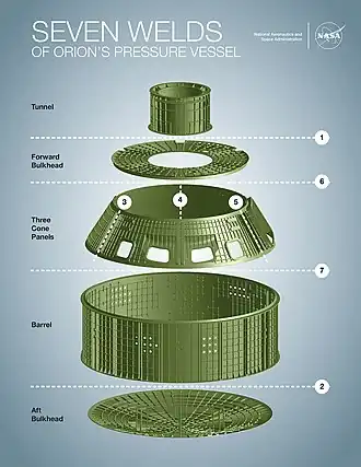 - ↑ (en) A huge day! We started machining the crew module for our first flight with humans!, Tweet van NASA's flight director en Orion program manager Mark Kirasich