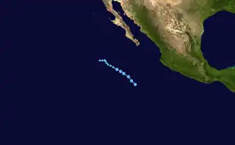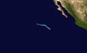 Op 9 juni lag er een breed, ongeorganiseerd lagedrukgebied met matige buienactiviteit op enige honderden kilometers ten zuidwesten van Acapulco de Juárez. Aanvankelijk zag het er niet naar uit, dat het systeem enige kans maakte zich te ontwikkelen en hoewel het systeem het volgende etmaal weinig in organisatie veranderde, werden de omstandigheden voor cyclogenesis gedurende die periode aanzienlijk verbeterd. Op 11 juni ontwikkelde het systeem daardoor tot tropische depressie 3-E op ongeveer 750 km ten zuidzuidwesten van Manzanillo en bereikte windsnelheden van 56 km/uur bij een minimale druk van 1004 hPa. Verder westwaarts had zij te kampen met drogere stabielere luchtmassa's en koelere zeewatertemperaturen. Zij was dan ook geen lang leven beschoren en degradeerde op 13 juni, ontdaan van haar convectie tot resterend lagedrukgebied.