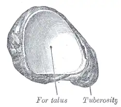 | Gewrichten | articuleert met vier beenderen talus proximaal os cuneiforme mediale, intermedium en laterale distaal | |||