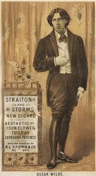 De figuur van Wilde en zijn estheticisme werden mild bespot in de operette Patience van William S. Gilbert en Arthur Sullivan (1881). Omdat die operette ook in Amerika een succes was, waar niemand wist wie Oscar Wilde was, organiseerde de beroemde impresario Richard D'Oyly Carte een lezingentournee van Wilde door de Verenigde Staten en Canada, die driekwart jaar duurde. Wilde vertrok op 3 januari 1882. Deze tournee was een 'media event' avant la lettre. Overal waar Wilde kwam werd hij zowel verguisd als de hemel in geprezen. Door het geweldige succes van deze tournee ontstond er een ware rage van estheticisme. Met Wildes portret, en zijn karikatuur in Patience, werd reclame gemaakt voor sigaren, gezondheidspoeder, gietijzeren stoofjes en alle mogelijke andere koopwaar. Plotseling werden zonnebloemen en lelies enorm populair. Dat de beroemde estheet door veel critici de grond werd ingeboord, maakte hem alleen maar bekender. In de geïllustreerde tijdschriften werden talloze karikaturen van hem opgenomen. De weerstand die zijn geëffemineerde (verwijfde) uiterlijk opriep leidde ook wel tot onverkwikkelijke scènes; in Oxford kwam zijn gedrag hem op een bad in de rivier de Cherwell en een aanval op zijn studentenkamer te staan. Maar door zijn aplomb wist Wilde dergelijke situaties te beheersen en uit te buiten. Met zijn lange haren, extreme kostuums, esthetische gebaren, exquise voorwerpen en uitgelezen taalgebruik werd Oscar Wilde dan ook het prototype van de dandy.