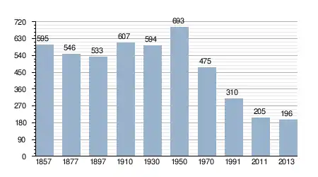 - Bron: INE, 1857-2011: volkstellingen
