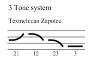 Een aantal andere talen zoals het Tlapanec en het Texmelucan (Zapoteeks) hebben drie toonhoogten.