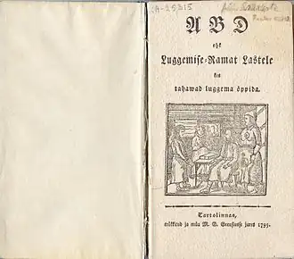 - 1795: ABD ehk Luggemise-Ramat Lastele (moralistisch leesboek voor kinderen in de Estische taal)[3]