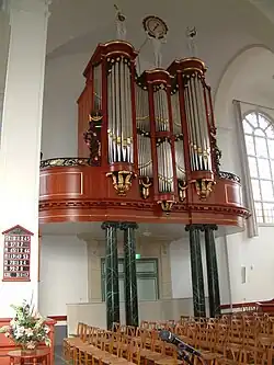 In de kerk vindt men een Lohman-orgel uit 1838. Het werd in 1970 in eerste instantie gerestaureerd door Firma J. de Koff, maar dit werd voltooid door Flentrop. Die herstelde in 1982 ook de balgen en het houten pijpwerk, en vernieuwde het loodbeleg alsmede de tongen van de Dulciaan. Een tremulant werd in 1994 aangebracht.[3]