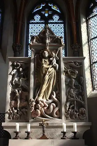 Het koor werd in het midden van de 15e eeuw in gotische stijl verbouwd. De laatgotische gewelven van het koor rusten op slanke hoekzuilen met kapitelen die zijn versierd met figuurlijke en florale decoraties. De sluitstenen tonen de wapens van de bouwers: aartsbisschop Jacob I van Sierk en graaf Ruprecht van Virneburg. Aan de noordzijde van het koor bevinden zich resten van muurschilderingen; ze stellen het motief van Gregoriusmis voor. De mensa van het altaar met de resten van een barokke altaaropzet stamt uit de 15e eeuw. In 1943 werd er op het altaar een opzet met de voorstelling van de vier ruiters van de Apocalyps geplaatst. Op de linker zijde bevindt zich een sacramentsnis en het doopvont uit de 17e eeuw.