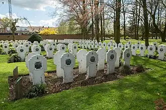 Vanaf de hoofdingang aan Blekerijstraat loopt de Ferdinand Le Hetetdreef dwars over de begraafplaats tot aan de Westlaan. Aan het begin van deze dreef liggen aan beide zijden militaire perken met graven van slachtoffers uit beide wereldoorlogen. In de stad waren verschillende Duitse lazaretten gelegerd waar gewonde en krijgsgevangen militairen van de verschillende legers werden verzorgd. Degene die overleden werden op de begraafplaats begraven in afzonderlijke perken. Alle Duitse gesneuvelden werden in 1956 overgebracht naar de Duitse militaire begraafplaats in Menen.