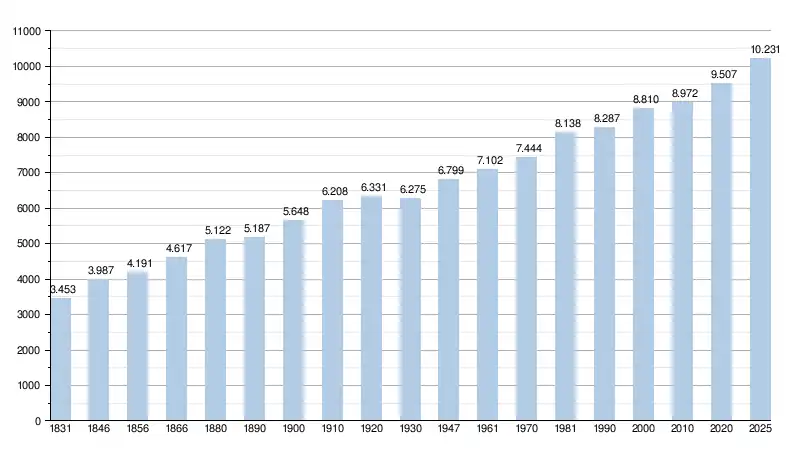 Alle historische gegevens hebben betrekking op de huidige gemeente, inclusief deelgemeenten, zoals ontstaan na de fusie van 1 januari 1977.