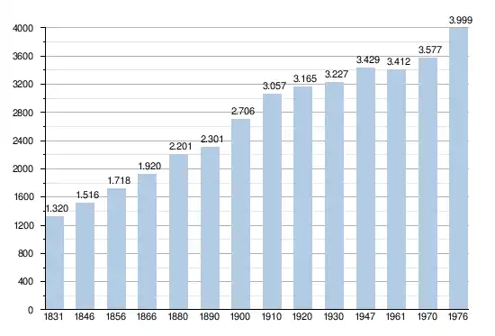 - Bronnen:NIS, Opm:1831 tot en met 1970=volkstellingen; 1976 = inwoneraantal op 31 december