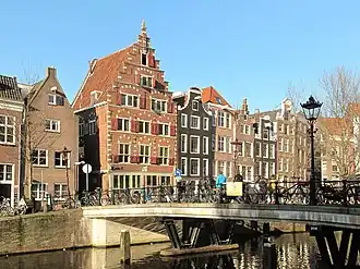 - De Gecroonde Raep (OZ Voorburgwal 57), een woonhuis gebouwd door Hendrick de Keyser. Dit is een bekend voorbeeld van een trapgevel in de Amsterdamse renaissancestijl van De Keyser.