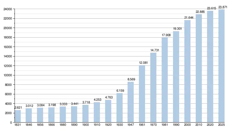 Alle historische gegevens hebben betrekking op de huidige gemeente, inclusief deelgemeenten, zoals ontstaan na de fusie van 1 januari 2019.