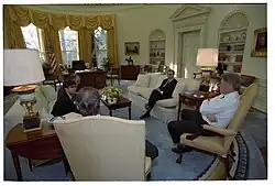 Wilson desk Truman tapijt Nixon gordijnen Nixon banken |