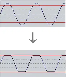 - Clipping - Een AD-converter zet een analoog signaal om in digitale getallen met een bepaald bereik. Wanneer het signaalniveau dit bereik overschrijdt dan zal de converter een continue waarde uitsturen die gelijk is aan de grens van het bereik. Het signaal wordt recht 'afgekapt'. Dit wordt clipping genoemd. Overigens kan dezelfde oversturing ook binnen het digitale domein voorkomen. Omdat de oversturing abrupt gebeurt vindt men deze doorgaans onwenselijk. Om dit te voorkomen dient men het signaal te verzwakken, continu of door middel van een limiter.