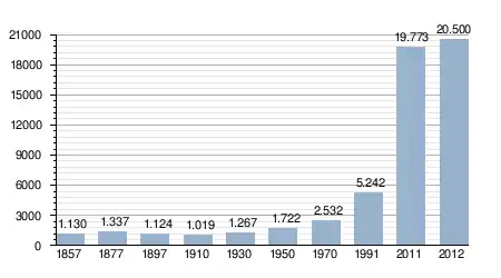 - Bron: INE; 1857-2011: volkstellingen