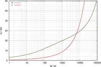 ![]() ■ hoogte van de wolk (h) ■ straal van de wolk (r) |