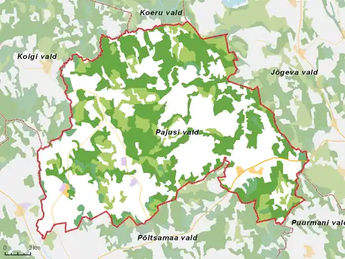 - ↑ (en) Cijfers van het Estisch bureau voor statistiek; tik onder het middelste vak ‘Pajusi rural municipality’ in.