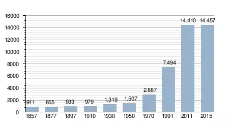 - Bron: INE; 1857-2011: volkstellingen