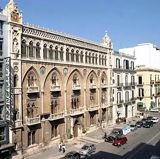 In 1879 kocht Emanuele Fizzarotti het pand. Fizzarotti breidde het huis uit met een tweede en een derde verdieping. In de jaren 1880 kreeg het paleis zijn huidig uitzicht. De nieuwe verdiepingen nemen elementen over van Venetiaanse gotiek, zoals bijvoorbeeld de wandelgalerij. De architect was Ettore Bernich; hij kreeg de taak om de Venetiaanse gotiek te laten overlopen in de barocchettostijl van de benedenverdiepingen.[1] In het interieur verschenen een tiental muurschilderingen. De grootste tonen de feestelijke aankomst van Pietro II Orseolo, doge van Venetië, als bevrijder van Bari in het jaar 1003. In een andere zaal is de huwelijksstoet te zien van keizer Frederik II met Yolande van Brienne, ook genoemd Yolanda van Jeruzalem. Frederik II verwelkomde in Bari zijn bruid die uit Jeruzalem afgereisd was (1225).